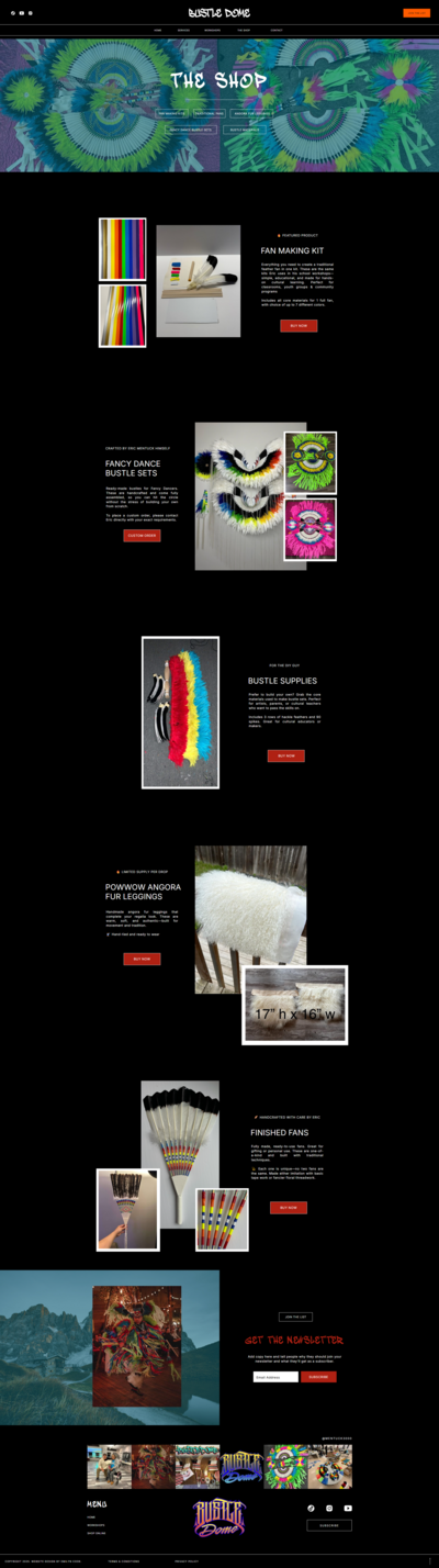 Eric came to me with a powerful vision — to create a home for Bustle Dome, where his work as a First Nations Bustle artist and educator could reach more communities across Canada. Together, we built a Showit website that not only showcases his artistry but makes it easy for schools and organizations to book workshops and purchase cultural kits online. The result is a site that honors tradition while embracing modern design — bold, functional, and rooted in culture. If you’re ready to transform your vision into a platform that truly represents your story and purpose, this is exactly what we can create together.